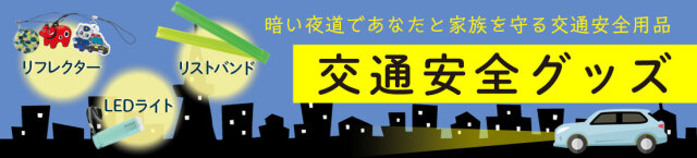 夜間の外出には反射材を身につけましょう!反射材を使用したキーホルダー・リストバンド・シール・バッグ、ベスト・ウインドブレーカーなど、交通安全に役立つグッズを豊富に取り揃えております。