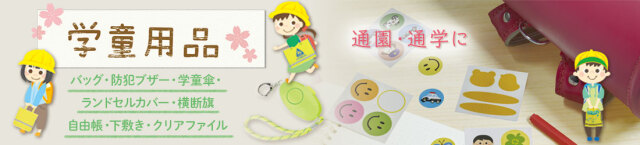 子供の安全を守る「交通安全」「いかのおすし」グッズや防犯ブザー、 通学・通園に便利な文房具やバッグなどを取り揃えております。 入学記念品にも最適です!